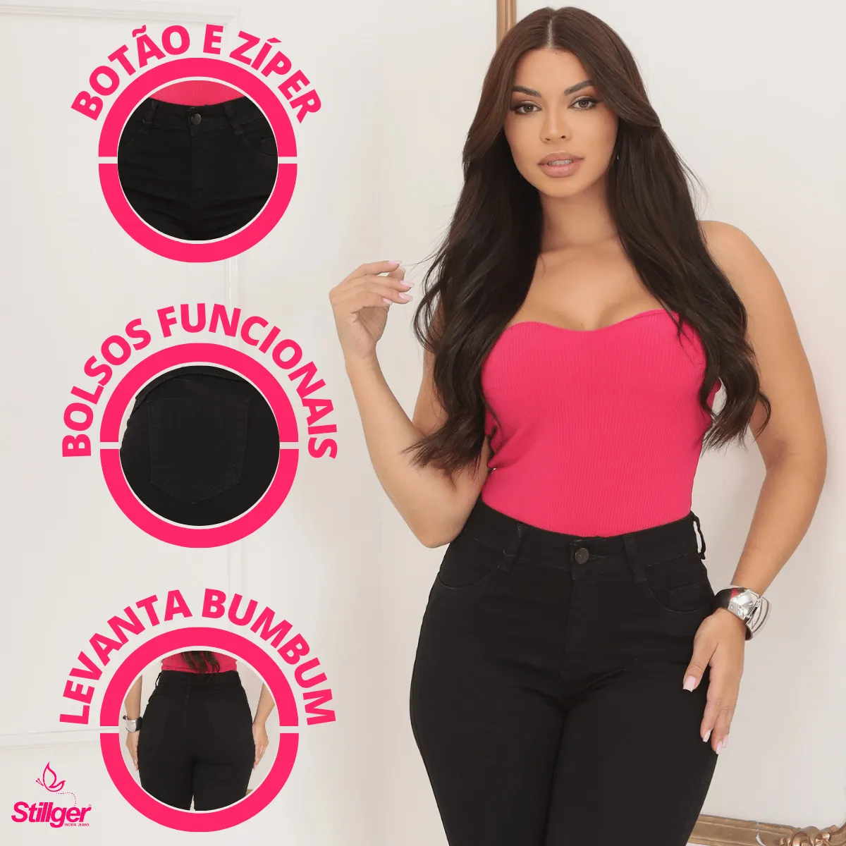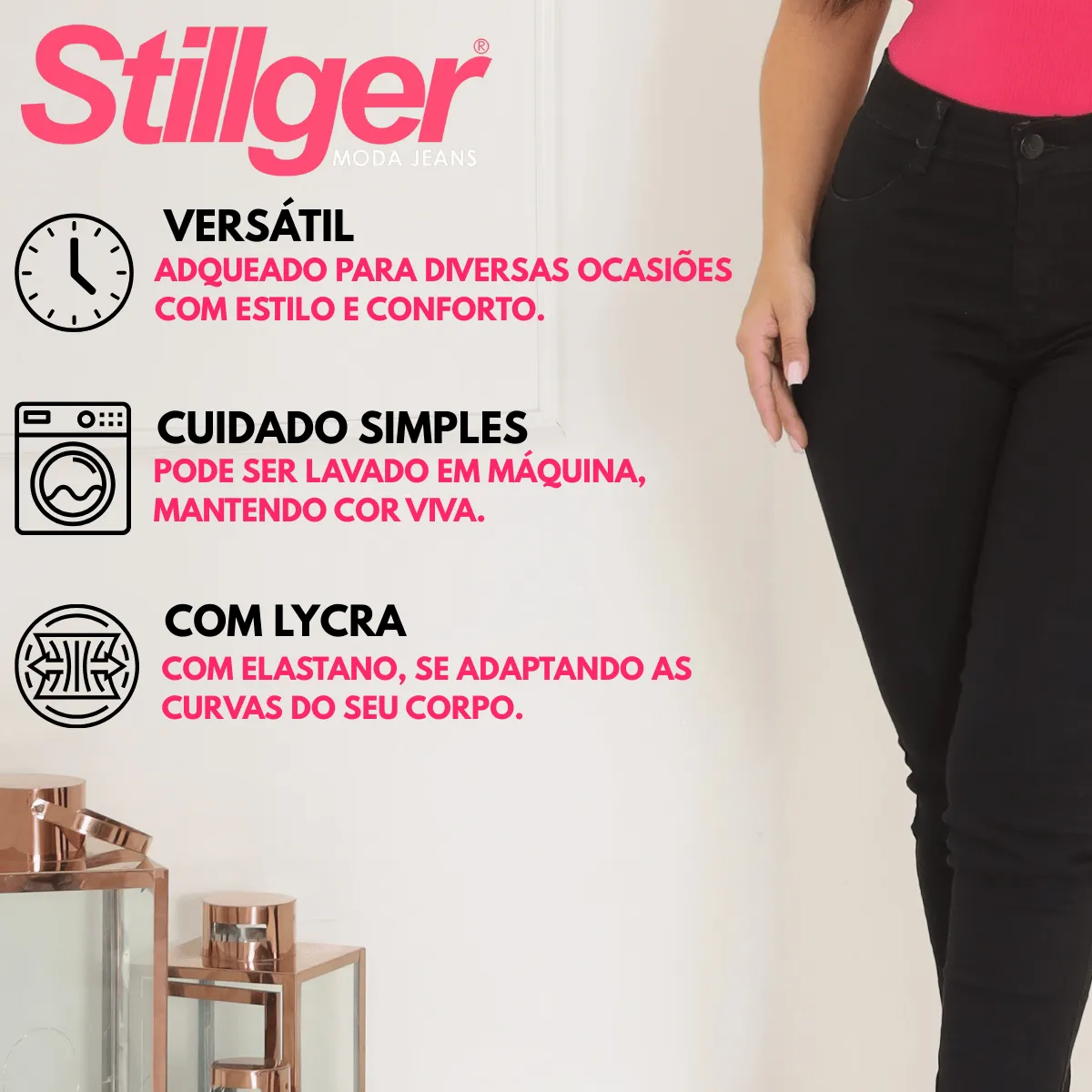 Invista em uma calça que une moda e funcionalidade. A Calça Preta Jeans Feminina Skinny Cós Alto Levanta Bumbum foi criada para oferecer tudo o que você precisa: estilo, elegância e um toque de ousadia. Atualize seu guarda-roupa hoje mesmo com esta peça indispensável!