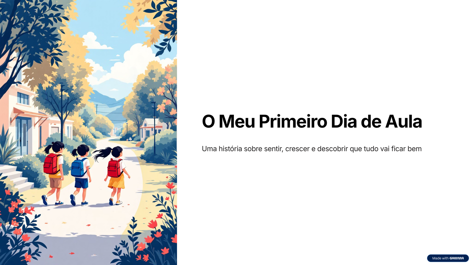 Ajudar crianças a lidarem com a ansiedade do primeiro dia de aula, validando sentimentos como medo, insegurança e expectativa, enquanto desenvolvem coragem, autonomia e confiança em ambientes novos.