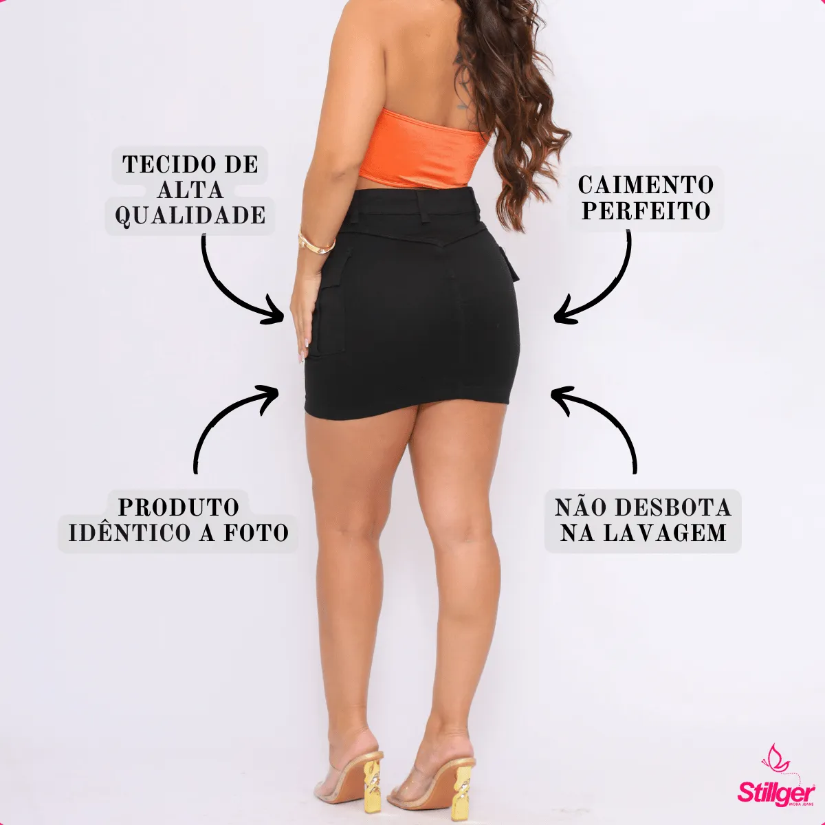 Feita com material de alta qualidade, esta saia inclui Lycra, garantindo flexibilidade e conforto durante o uso. A modelagem com cintura alta ajuda a definir a silhueta, trazendo suporte e valorizando as curvas de forma natural. Além disso, o efeito levanta bumbum oferece aquele toque adicional que promove confiança e elegância com cada movimento.